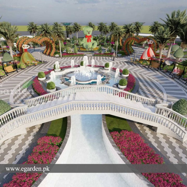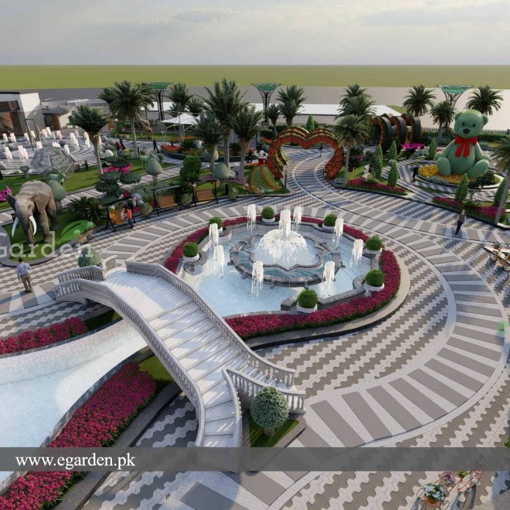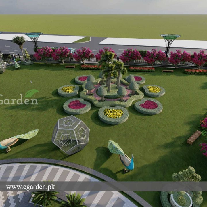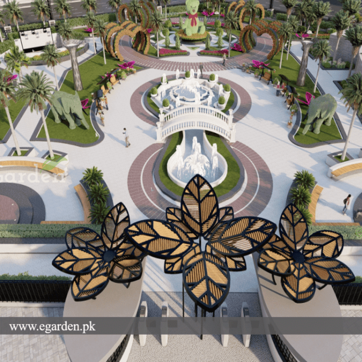 Key Features Amphitheater, A 200-seat amphitheater designed for public events and performances. Floral Displays is inspired by the Miracle Garden Dubai, the park features vibrant floral arrangements and thematic gardens. Illuminated Landscapes, the park is designed with illuminated landscapes that enhance its aesthetic appeal, especially at night. Thematic Gardens, sections of the park dedicated to specific floral themes. Art Installations, Unique installations that combine nature and art to create engaging experiences for visitors. . The design also includes enhanced edges to define different zones within the park