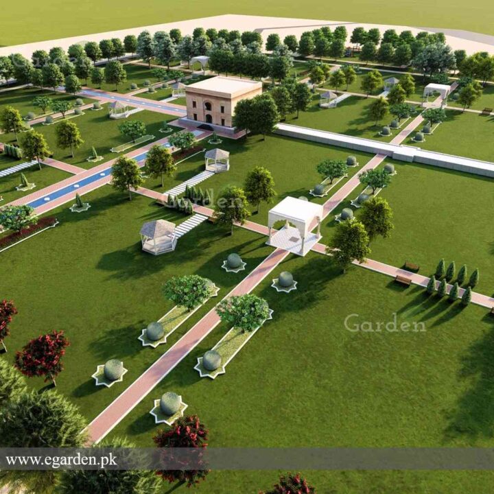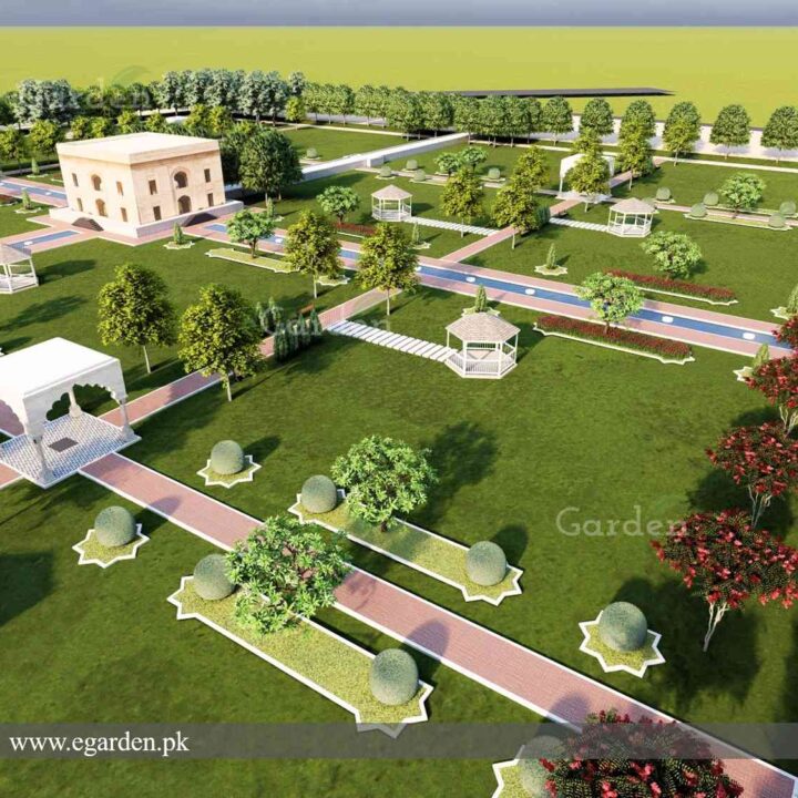 • Soft geometric pathways that echo the balance and harmony of traditional charbagh garden planning.